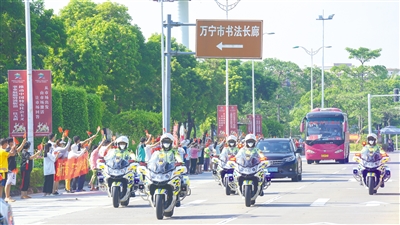 “感谢有‘宁’,‘疫’无反顾!”“‘疫’路有你,‘苏’战‘苏’决”“白衣执甲逆风行,赤胆怀德暖人心!”……沿途街道,到处可见红色条幅,无不表达着海南群众对白衣战士们的感激之情。