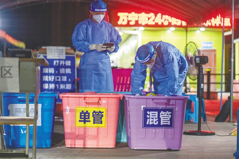 夜幕下,在万宁市社区或村庄的某一角,有一群疫线“守夜人”。他们开启“夜间模式”,用坚守点亮夜晚。