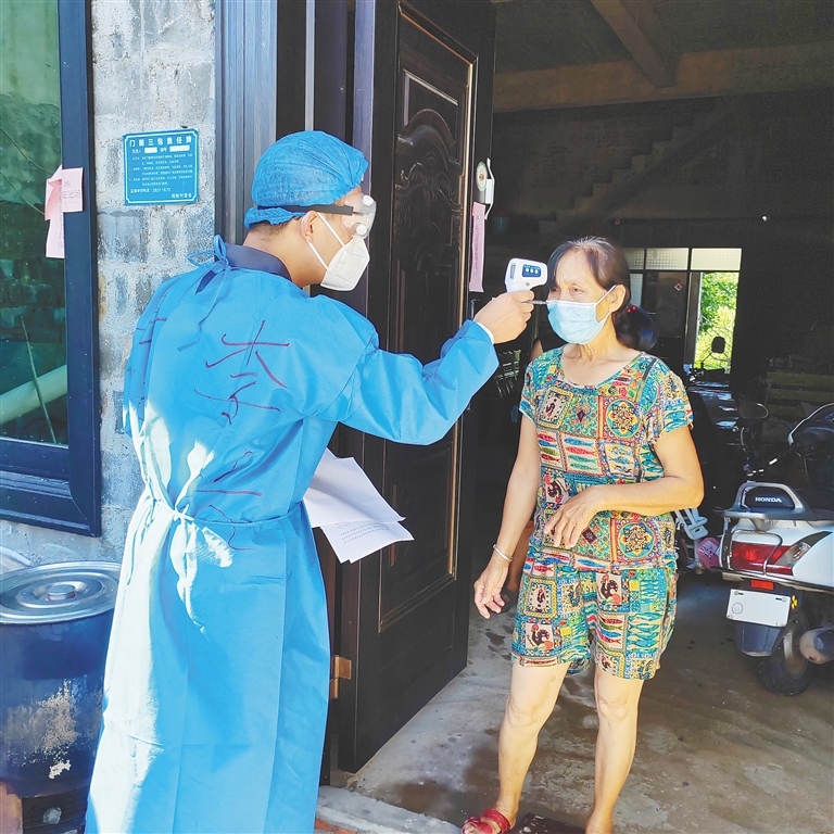 8月15日凌晨6时,李兴来到临高新盈镇抱蛟村,包点担任高风险区抱蛟村民小组中网格长。