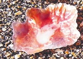 在几何学中有一种三角形叫不等边三角形,而在海贝中,有一种蛤叫不等蛤。顾名思义,不等蛤指的是两片贝壳长得不均等不对称的蛤。不等蛤一侧的贝壳上有孔,足丝可由此穿过并附着在外物上。不等蛤的贝壳形状不规则,但颜色却很亮丽,散发着珍珠般的光泽。
