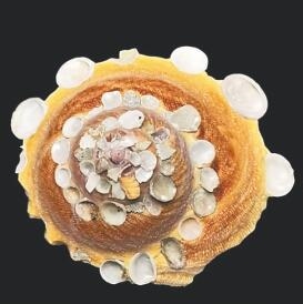 中华衣笠螺又称缀壳螺,是一种非常喜欢“装扮”自己的海贝。为了进行伪装以达到保护自己的目的,它们经常在自己的斗笠状贝壳上粘上一些大小不一的小贝壳,看起来就像一顶斗笠上挂了许多吊坠。