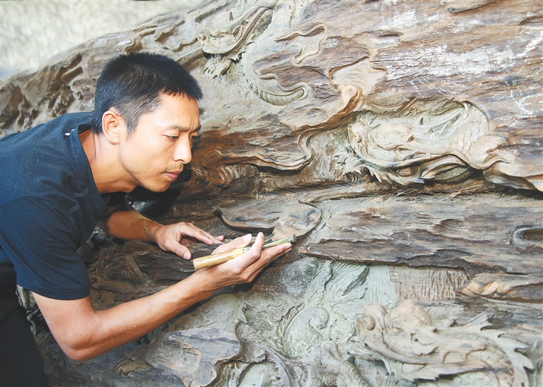 “三分人工七分天成。”吴孔德介绍着这些年来他雕刻的一件件作品。“吃饭”的手艺早已成为他热爱的手艺,沉醉在雕刻过程中的吴孔德怎么也不会觉得累。