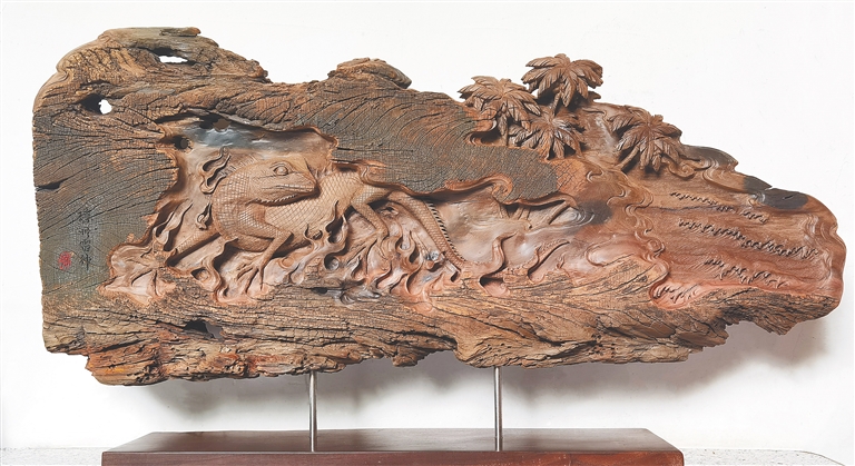 这些年来,为了传播、振兴传统工艺,吴孔德走进高校任教,同时招收徒弟,传授技艺。他陆续收徒60多位,其中有12位成为省级工艺大师,这中间又有6位南海工匠。用海南的木料也好,雕刻海南的文化主题也好,他希望具有海南特色的木雕可以为更多人所知。