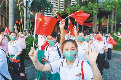 9月5日,三亚群众欢送返程的湖南援琼医疗队员。 本报记者 武威 摄