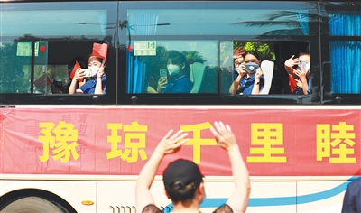 9月5日,海口市民和河南援琼医疗队员挥手告别。 本报记者 李天平 摄
