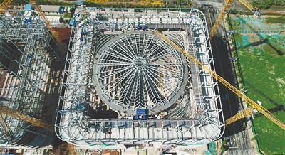 ② 航拍建设中的海口江东新区海南银行总部大楼项目。新华社记者 杨冠宇 摄
