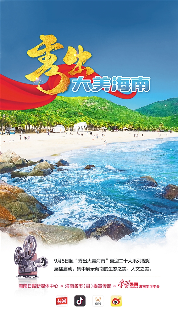 本报海口9月6日讯 (记者周钰)为迎接党的二十大胜利召开,多角度、多层次、多元化展现党的十八大以来海南各市县建设发展成就,9月5日起,海南日报新媒体中心联合学习强国海南学习平台、各市(县)委宣传部开展“秀出大美海南”喜迎二十大视频展播系列活动,展示海南的人文之美、现代之美、生态之美。