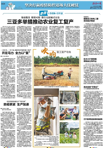 三亚多举措推动农业复工复产