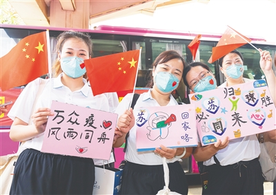 送别仪式现场,江苏援琼医疗队方舱队和儋州干部群众拍照留念、互诉衷情,随后踏上返程。至此,江苏援琼医疗队方舱队圆满完成支援任务。