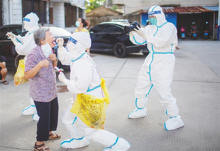 在万城镇,党员干部分类搬运防疫物资,确保防疫物资精准、及时发放到每个人手上;在万城镇朝阳社区,来自天津市第一中心医院的护士唐志敏,正在高风险区挨家挨户做核酸采样;在和乐镇西坡村,多方联动搭建销售平台,让农户滞销的莲藕有了新的出路……