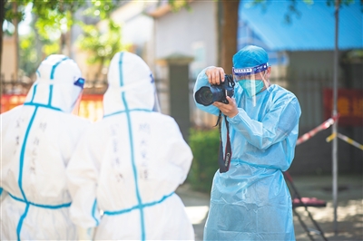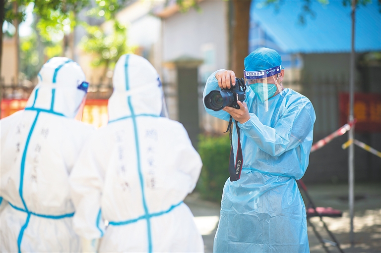 这样的相遇,还有很多。他们或是“疫”线志愿者,或是医护人员。每逢相遇,杨师忠都会给他们多拍几张照片。按下快门的那一刻,他心中洋溢着说不出的自豪感。