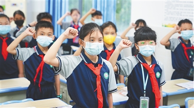 9月8日,海口市玉沙实验学校落实疫情防控“错峰错时”开学的工作要求,开展以“学习抗疫逆行之光”为主题的2022年秋季开学第一课教育活动,向这场特殊战“疫”中的逆行者致敬。