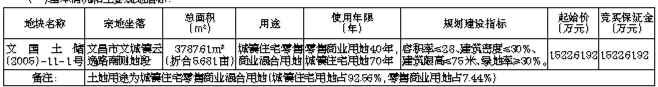 经文昌市人民政府批准,文昌市自然资源和规划局决定以挂牌方式出让1幅地块的国有建设用地使用权。现将有关事项公告如下: