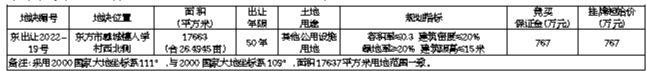 该宗地土地权属清晰、安置补偿落实到位、地上附着物清表、无法律经济纠纷、土地开发利用规划条件明确、符合土壤环境质量要求、具备动工开发所必需条件。不涉及国家安全、净空保护区域、气象环境探测保护范围、土壤环境、历史文化保护、文物保护单位等敏感因素影响。二、竞买事项:(一)中华人民共和国境内外的法人、自然人和其他组织,除法律法规另有规定者外,均可参加竞买(注:失信被执行人不得参加本次竞买)。属境外机构(含港、澳、台地区)申请参与竞买的,按照规定需提交商务主管部门核发的《外商投资企业批准证书》和工商主管部门核发的《营业执照》。本次挂牌出让地块不接受联合竞买;必须在挂牌出让公告规定的时间内把竞买保证金存入东方市自然资源和规划局指定账户(以挂牌竞买保证金入账户时间为准)。(二)具有下列行为的法人、自然人和其他组织不得参加本次土地出让挂牌:1.在东方市范围有拖欠土地出让金行为,并未及时改正的。2.在东方市有闲置土地、违法利用农村集体土地建设商品住房、擅自改变土地用途等违法行为,并未及时纠正的。3.在东方市范围有非法占地、违法建设行为的。(三)该宗国有建设用地使用权采取公开挂牌方式出让,并按照价高且不低于底价者得的原则确定竞得人。(四)本次挂牌出让宗地的详细资料和具体要求(详见挂牌出让文件)。申请人可于2022年9月9日至2022年10月12日到东方市自然资源和规划局办公楼二楼权益和开发岗获取挂牌出让文件。也可从海南省建设用地使用权和矿业权网上交易系统(网址:http://lr.hainan.gov.cn:9002)查看和打印。交纳竞买保证金的截止时间为2022年10月12日17:00。经审核,申请人按规定交纳竞买保证金,具备申请条件的,东方市自然资源和规划局将在2022年10月12日17:30前确认其竞买资格。(五)本次国有建设用地使用权挂牌出让活动在海南省政府会展楼二楼省公共资源交易服务中心土地交易厅进行。挂牌起始时间为:2022年9月29日8:30;挂牌截止时间为:2022年10月14日9:30;挂牌现场会时间为:2022年10月14日9:30。(六)挂牌时间截止时,有竞买人表示愿意继续竞价的,转入现场竞价,通过现场竞价确定竞得人。(七)本次挂牌出让不接受电话、信函、电子邮件及口头竞买申请。三、宗地开发建设要求:(一)根据市发改委的要求,建议该宗地项目建成后,安排10名用工名额,在同等条件下优先招录本市户籍居民。招录条件按人事劳动部门规定执行,同工同酬并遵照乙方规章制度管理。(二)该宗地若实施装配式建筑,应按装配式建筑有关规定执行。上述开发建设要求将列入《海南省产业项目发展和用地准入协议》。土地竞得人在签订《国有建设用地使用权出让合同》的同时,与市发改委签订《海南省产业项目发展和用地准入协议》。四、其他事项:(一)确定竞得人后,竞得人与市自然资源和规划局当场签订《成交确认书》,并在30日内签订《国有建设用地使用权出让合同》,按照合同约定支付土地出让金,依法申请办理土地登记。(二)受让人取得土地使用权后,应严格按照规划要求建设。涉及水务、绿化、环保、消防、交通管理等应符合国家和海南省的有关规定。(三)成交价款不含各种税、费(相关税费由竞得人按有关规定缴纳),挂牌服务费和公证费按相关规定由竞得人支付。(四)挂牌地块以现状土地条件出让,本次挂牌出让事项如有变更,以届时变更公告为准。(五)本公告未尽事宜详见《东方市国有建设用地使用权挂牌出让手册》,该手册所载内容为本公告的组成部分。网址: http://zw.hainan.gov.cn/ggzy;http://lr.hainan.gov.cn; http://www.landchina.com;联系人:陆先生 洪先生;联系电话:0898-25585295 18084630580;地址:东方市二环南路4号东方市自然资源和规划局。