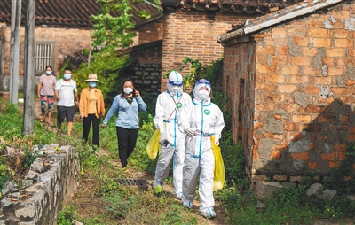 集丰村的全体干部看在眼里,疼在心里。为了避免医疗队员体力透支,他们找来6辆三轮车,让熟悉路况的志愿者载着“大白”们入村;志愿者提前挨家挨户通知,组织发动群众在家门口等待,这样本来要4小时才能完成的采样,2小时就可顺利采完。