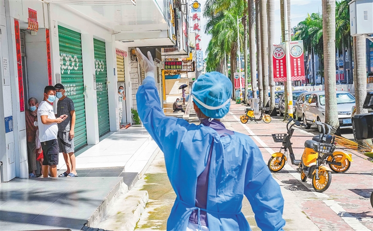 一张张被口罩勒出印子的脸庞、一个个被汗水浸得湿透的背影、一幕幕被海南人民铭记的场景,共同勾勒出盛夏海南的这场战“疫”中守望相助、尽锐出战,团结一心、众志成城的画面。