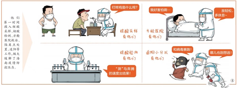 “没有从天而降的英雄,只有挺身而出的凡人。”白衣为甲、逆行驰援的孤胆英雄,也是有血有肉、有家有室的普通人,他们牺牲的不仅是与家人的共处时光,更牺牲了自身远离病毒的安全。正是他们坚定地与海南广大战“疫”一线工作者战斗在一起,用血肉之躯与病毒抗争,用专业、仁心托起一次次生的希望,筑牢疫情防控的“铜墙铁壁”,守护人民群众的生命安全、身体健康。
