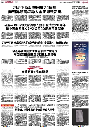 | 习近平同非洲联盟领导人就非盟成立20周年 和中国非盟建立外交关系20周年互致贺电 | |
