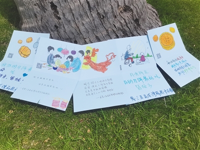 “哇,好美的贺卡”“我喜欢这张卡片”“妈妈,我要多吃一个月饼”……现场的隔离人员,无论大人小孩都十分开心。
