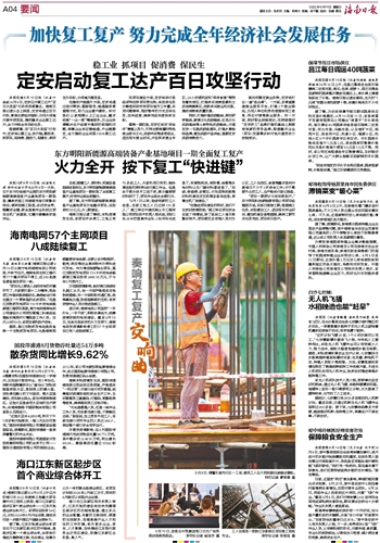 定安启动复工达产百日攻坚行动