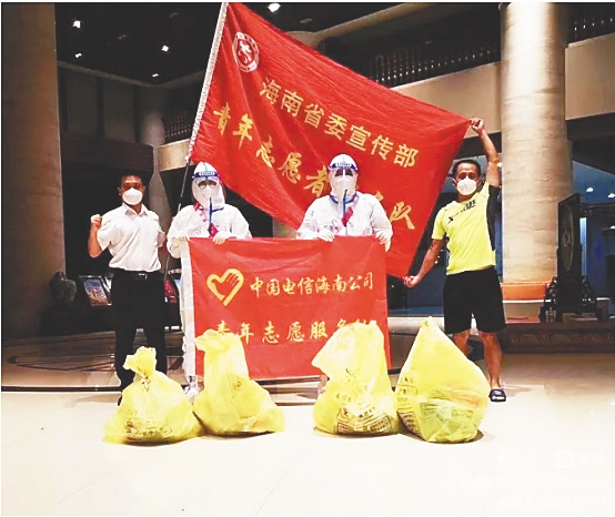 8月17日,陈益宇、林志泓、谢向磊、尹舒未、李琛、马谦礼、王策等11名新入职大学生,积极响应省委支援三亚抗疫号召,与其他62名电信志愿者奔赴隔离酒店、隔离学校工作,至今已连续奋战22天,他们发扬不怕苦不怕累的精神,承担着信息录入、进隔离区做核酸检测、送餐、送物资、收生活垃圾等看似简单重复,实则风险度很高的工作。每天工作十多个小时,没有人退缩,没有人抱怨。“在三亚当志愿者的这段时间,我感受到了志愿者大爱无疆、乐观向上的精神,受益匪浅。”谢向磊说。