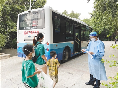 9月6日下午5时许,在东方八所镇某隔离点解除隔离人员通道前,一辆大巴已停在通道口,隔离点“点长”蔡小勇则拿着解除隔离人员信息表早早守候在此。这天,共有160多人解除隔离,回到社区或村居。