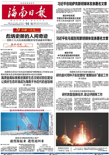 高质量高标准推进国家生态文明试验区建设 让良好生态环境成为海南子孙后代的金饭碗