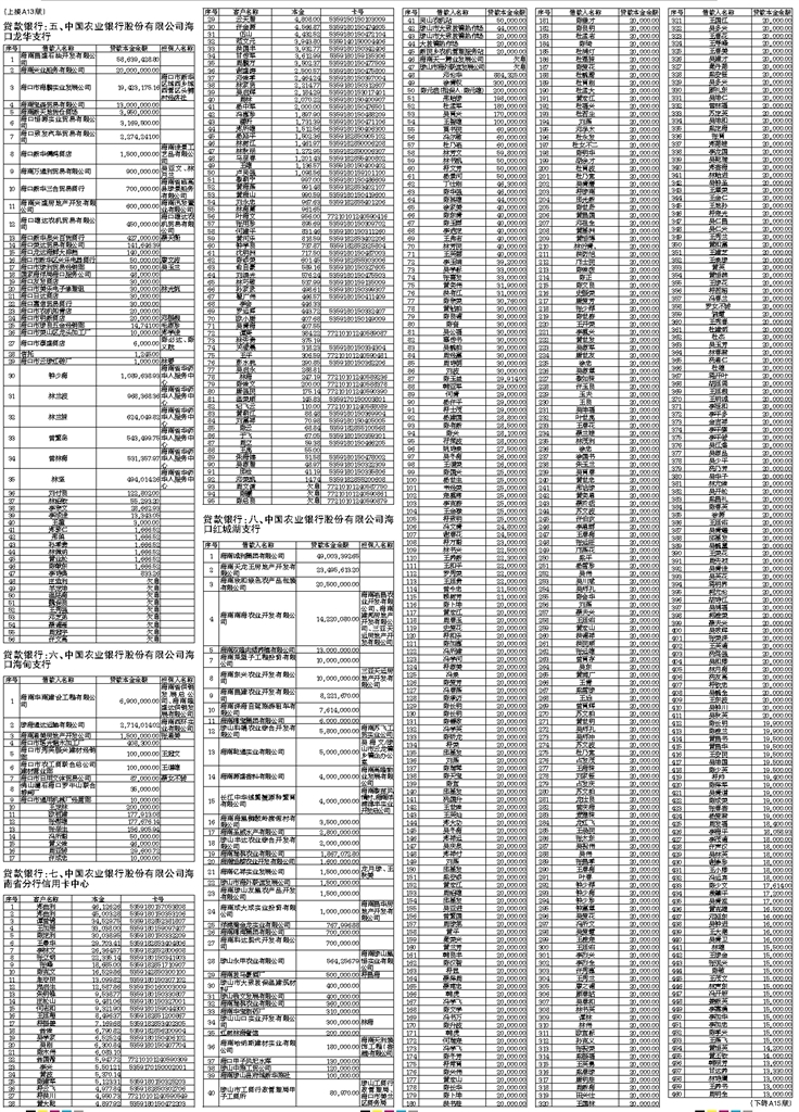 中国农业银行股份有限公司海南省分行营业部、海口南航支行、海口金贸支行、海口海秀支行、海口龙华支行、海口海甸支行、海南省分行信用卡中心、海口红城湖支行债权联合催收公告