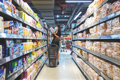 9月15日,在三亚旺豪超市红沙店,居民选购生活用品。本报记者 武威 摄