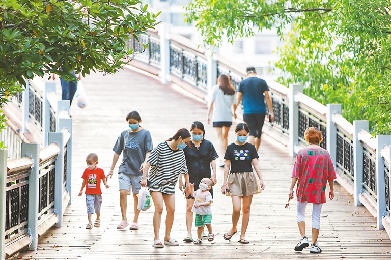 9月15日下午,在三亚河畔,市民带着孩子游玩。见习记者 王程龙 摄