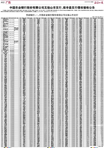 中国农业银行股份有限公司五指山市支行、保亭县支行债权催收公告