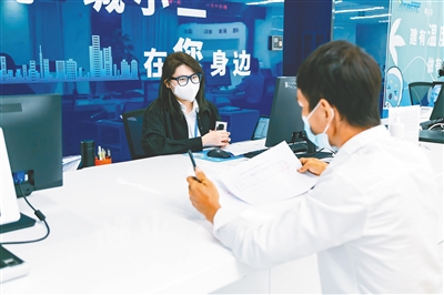 ①9月16日,在崖州湾科技城园区综合服务中心,园区企业职工咨询人才社保问题。马征辉 摄