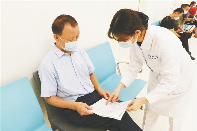 ②9月14日,在瑞金海南医院体检中心,护士为体检者讲解体检项目。院方供图