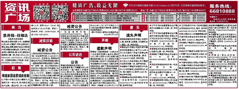 ●林青松不慎遗失三级船长证书,证号:460028196808151X05,声明作废。