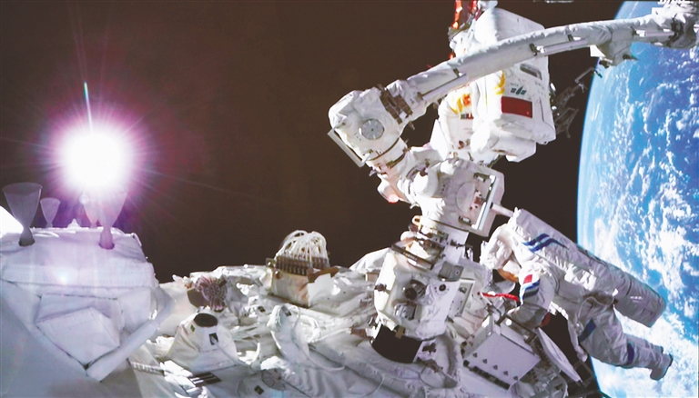新华社北京9月17日电 (李国利 杨欣)据中国载人航天工程办公室消息,9月17日17时47分,经过约5小时的出舱活动,神舟十四号航天员陈冬、刘洋、蔡旭哲密切协同,完成出舱活动期间全部既定任务,航天员陈冬、航天员蔡旭哲已安全返回问天实验舱,出舱活动取得圆满成功。