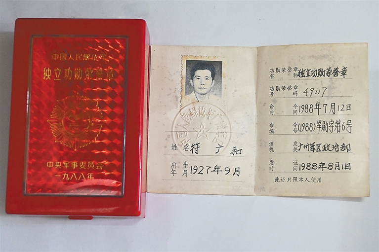 时光如白驹过隙,历经半个多世纪的时间洗礼,当年骁勇的琼崖纵队战士已步入暮年。95岁的琼崖纵队老战士符广和家中,保存着一张68年前的照片。照片里,27岁的符广和穿军装、戴军帽,眼神坚毅深邃。符广和14岁就加入了琼崖纵队,这张军装照的背后承载着他们这些革命前辈对解放后新生活的向往。