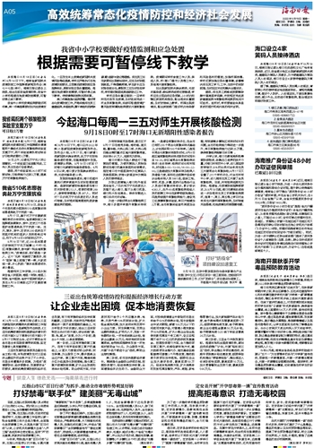 | 海南日报 高效统筹常态化疫情防控和经济社会发展 005 2022-09-191 2022年09月19日 星期一 |