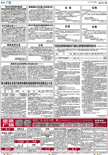 海南省海口市中级人民法院公告