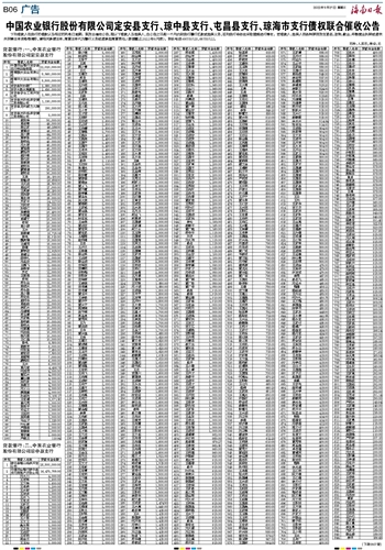 中国农业银行股份有限公司定安县支行、琼中县支行、屯昌县支行、琼海市支行债权联合催收公告