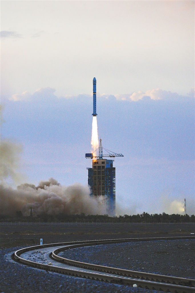 9月21日7时15分,我国在酒泉卫星发射中心使用长征二号丁运载火箭,成功将云海一号03星发射升空,卫星顺利进入预定轨道。该卫星主要用于开展大气海洋环境要素探测、空间环境探测、防灾减灾和科学试验等任务。新华社发