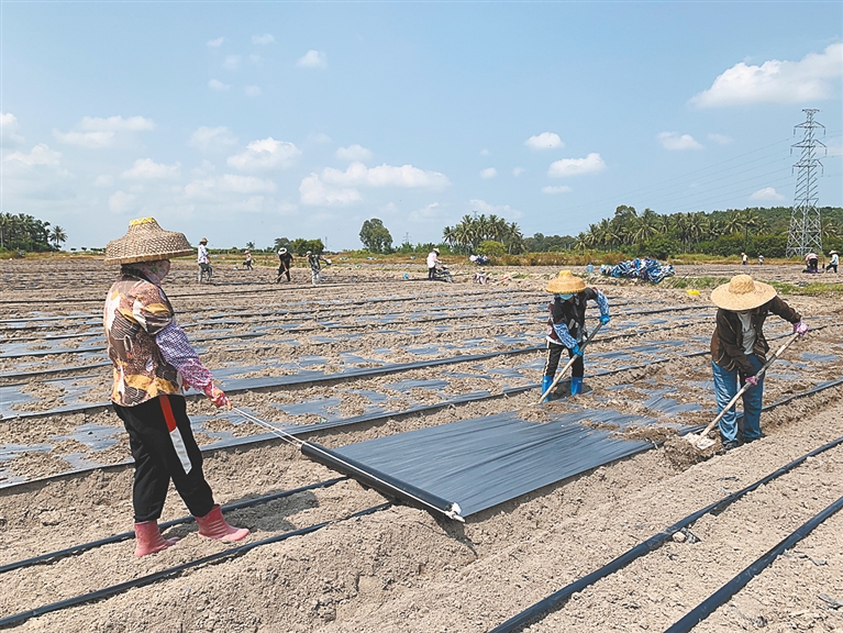 另一边,农业复工复产也开足马力。9月21日,在光坡镇武山村大补山田洋里,村民们正起垄备耕,铺设地膜,为即将到来的圣女果种植做好准备。武山村共16个村民小组,人口约4400人,主要经济收入来自农业——耕地面积8000余亩,主要以种植圣女果、西瓜、冬季蔬菜为主,圣女果是该村的支柱产业。