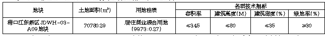 海口市江东新区JDWH-03-A09地块用地的规划指标情况详见下表: