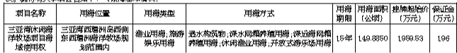 根据《中华人民共和国海域使用管理法》《海南省实施<中华人民共和国海域使用管理法>办法》《海南省海域使用权审批出让管理办法》及有关法律法规规定,经三亚市人民政府批准,三亚市自然资源和规划局委托海南华信拍卖有限责任公司以公开挂牌方式出让一宗海域使用权。现将有关事项公告如下:一、宗海基本情况: