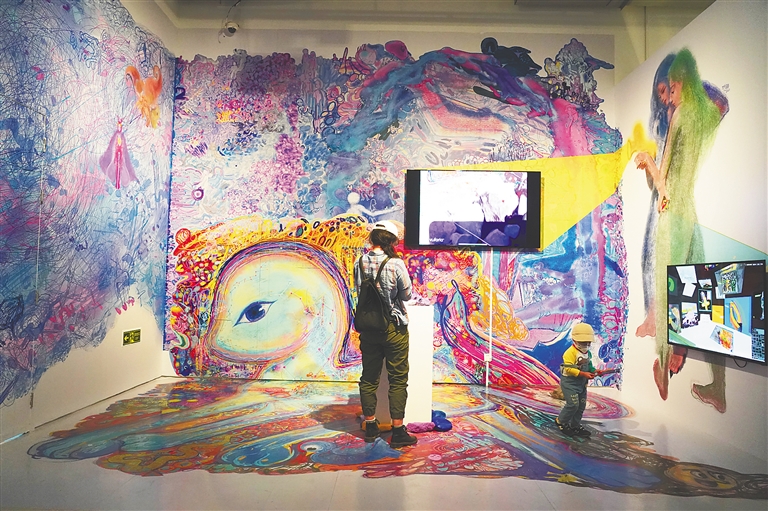 图为参观者在2022亚洲数字艺术展上观看艺术作品。