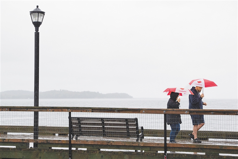 加拿大气象部门23日说,横扫加勒比和百慕大地区的飓风“菲奥娜”预计将于24日早上登陆加拿大东部,可能成为该国史上遭遇的最强风暴之一。加拿大环境部说,“菲奥娜”预计将在新斯科舍省布雷顿角岛登陆。届时“菲奥娜”可能减弱为风暴,但依然破坏力十足,可能带来大风、暴雨和巨浪。图为9月23日,在加拿大哈利法克斯,人们撑伞在雨中行走。新华社/美联
