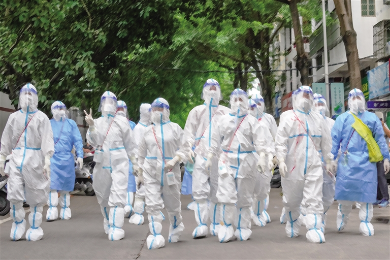 “敲门”“扫楼”精准排查摸清底数,逐巷逐楼扩大密接排查范围,集中省、市优势兵力,组建社区工作队,实施同住共管,实行优先检测、优先流调、优先转运、重点管控,确保“应转尽转、应隔尽隔,日清日结”。