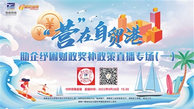 本报讯 (记者李梦瑶)为迅速有序推动全省主要行业全面复工复产,方便企业对照政策享受补贴,9月26日15时30分,省优化营商环境工作专班办公室将联合省旅文厅、省工信厅举办“营”在自贸港——助企纾困财政奖补专场直播。欢迎登录“海小二”省优化营商环境工作专班官方抖音号或“海南广播电视总台”抖音号、快手、视频号、头条、微博、视听海南等平台关注直播。