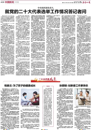 在以习近平同志为核心的党中央坚强领导下,按照党章规定和党中央统一部署,全国38个选举单位选举产生了2296名党的二十大代表。党的二十大代表是共产党员中的优秀分子,具有先进性和广泛代表性,是经各级党组织逐级遴选产生,肩负着9600多万名党员、490多万个基层党组织的重托,凝聚着全党的意志,承载着人民的期望,将光荣地出席党的第二十次全国代表大会。他们中很多是来自生产和工作第一线、在各行各业作出突出贡献的先进模范党员。新华社从即日起开设“二十大代表风采”栏目,重点介绍生产和工作第一线党员代表的先进模范事迹,以学习和弘扬他们的优秀品质和精神风范。