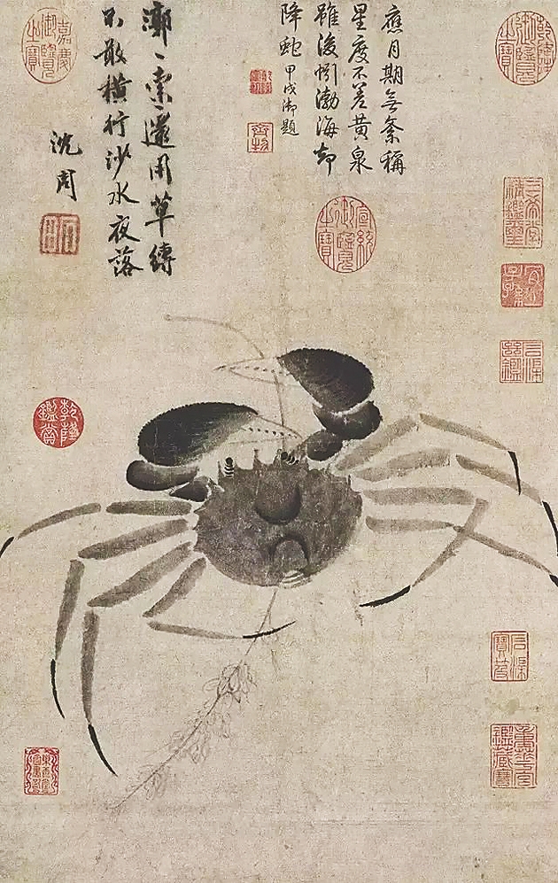 元朝画家倪瓒的《云林堂饮食制度集》,讲到煮蟹法。因造型、姿态、色泽、习性等特色,螃蟹乃中国画传统题材之一。历代画家泼墨画蟹,内含得意或失意、讽刺或自嘲。翰墨蟹缘,佳话迭出。