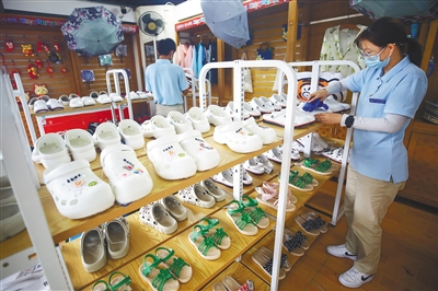 9月28日,三亚南山文化旅游区员工在整理旅游商品,为29日恢复开放做好准备工作。